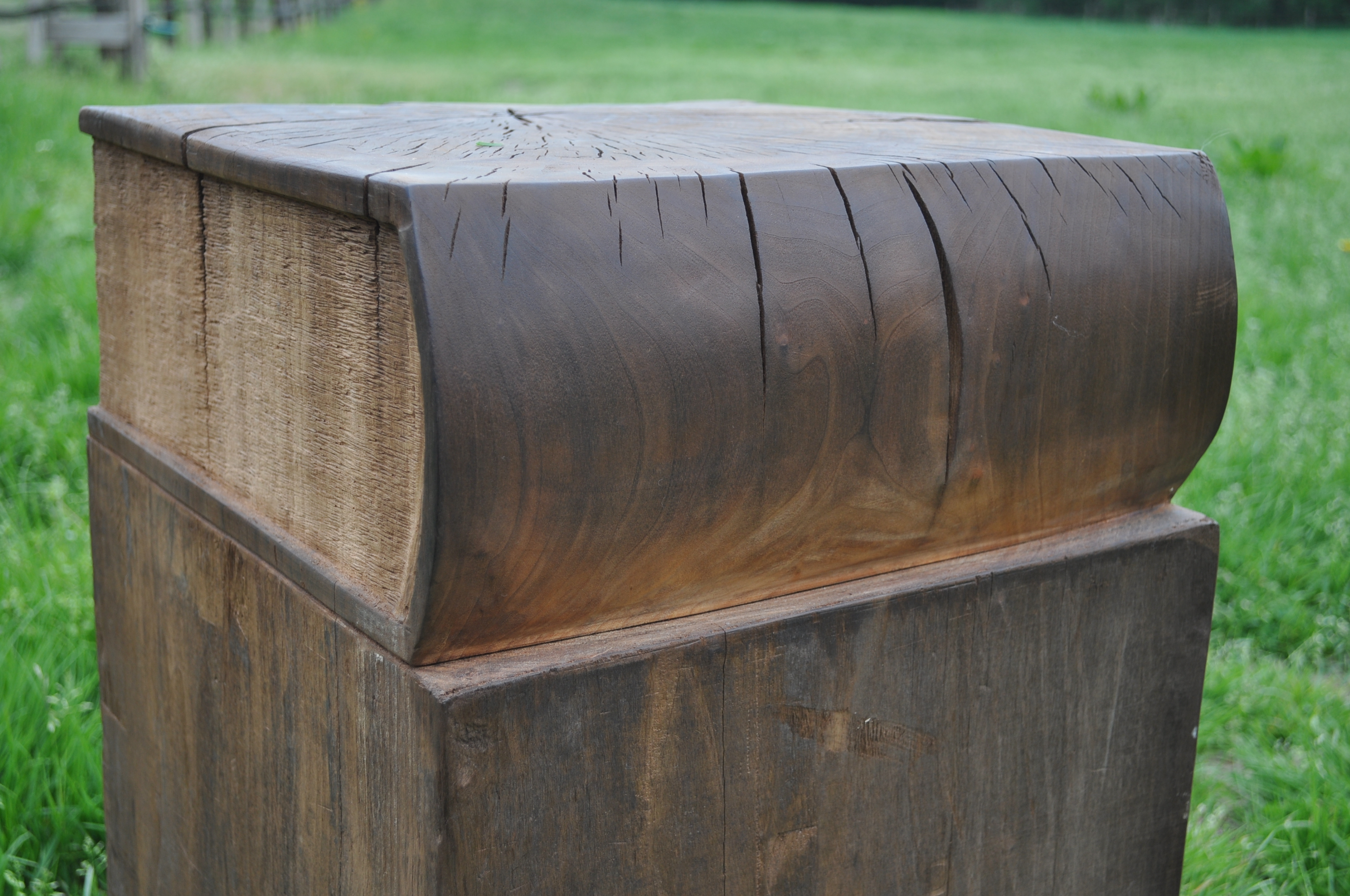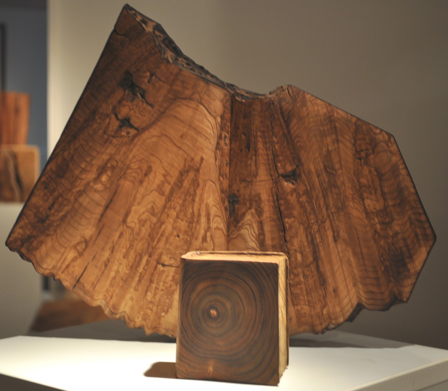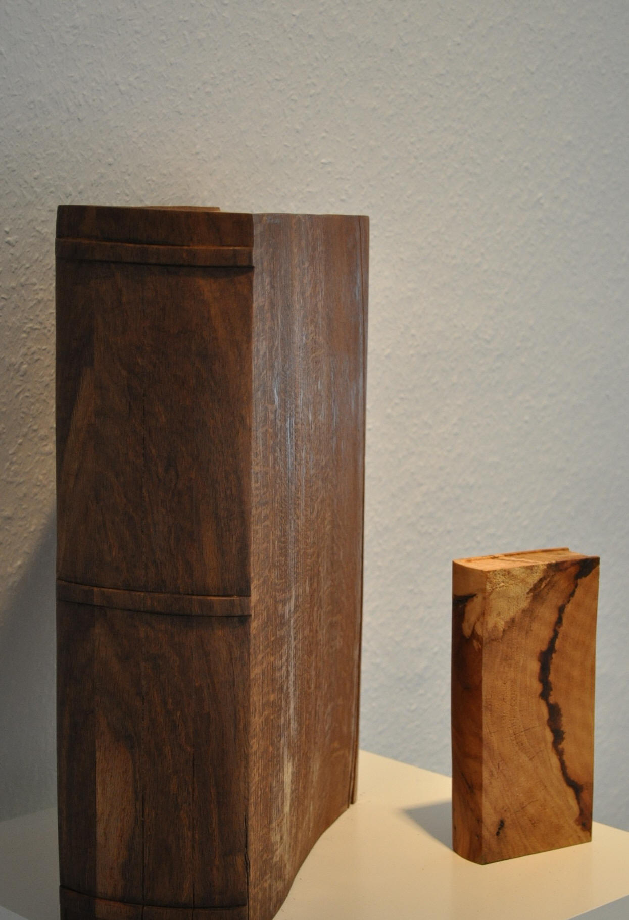 Buch-Skulpturen – Buch-Kunst Bücher konservieren Geschichte und Geschichten. Jedes Buch hat wiederum seine eigene individuelle Geschichte. Diese reicht von der liebevollen Behandlung, über Vernachlässigung bis hin zur Ächtung und gar Verbrennung. So spannt sich der Bogen beinahe zwangsläufig vom Buchschicksal zum Schicksalsbuch des Menschen. Ein jeder möge seine Fantasie bei der Berührung der Buchskulpturen schweifen lassen und für jedes Buch eine eigene Geschichte erfinden. Berühren ist wichtig, das haptische Erlebnis schmeichelt dem Tastsinn. Man „begreift“ die Schönheit des Holzes. Die Buchskulpturen in das rohe Holzstück hineindenken, das ist die Kunst. Jedes Stück ist einmalig in Form, Struktur und Maserung.